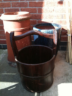 I had another little explore around my local antiques centre on Saturday afternoon on the off chance of spotting a nice little pot or ornament (I was hoping for a couple of flamingos but wasn't holding my breath). I came away with a huge terracotta chimney pot, a tall blue ceramic plantar and a half barrel planter which will look amazing full of tulips.